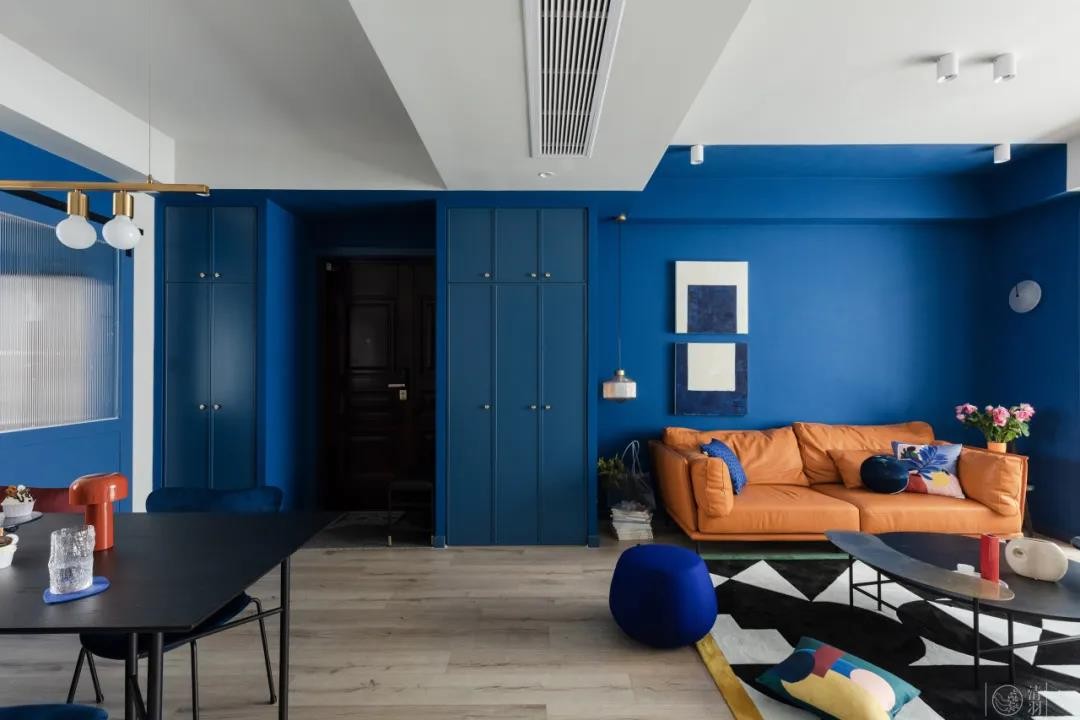 整体现代风的空间,在空间内加入大量的深蓝色元素,营造出一种安静优雅的氛围感;同时加入鲜艳色彩的软装布置,也让居住空间充满自然优雅的舒适气息。
