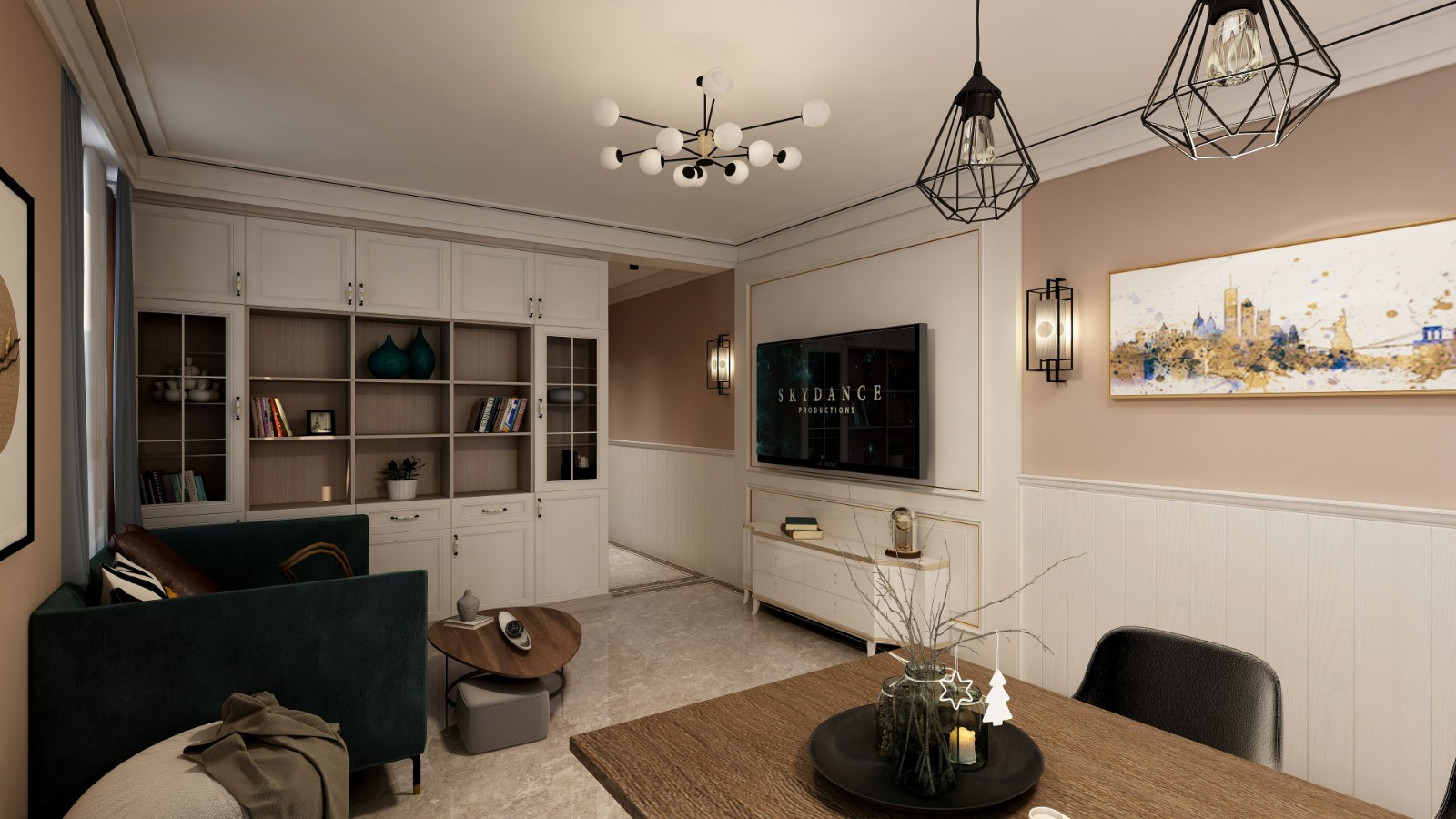 客餐厅设计主要是运用颜色搭配,***粉色做主色,搭配白色护墙板,做出层次感