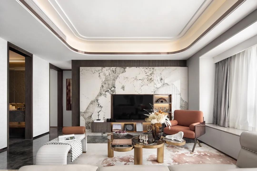 客厅的装饰与家具形制,衬托着屋主以建筑和城市为观照的品味与胸怀。以建筑结构的基础元素为设计灵感的玄关挂画,精工细腻,