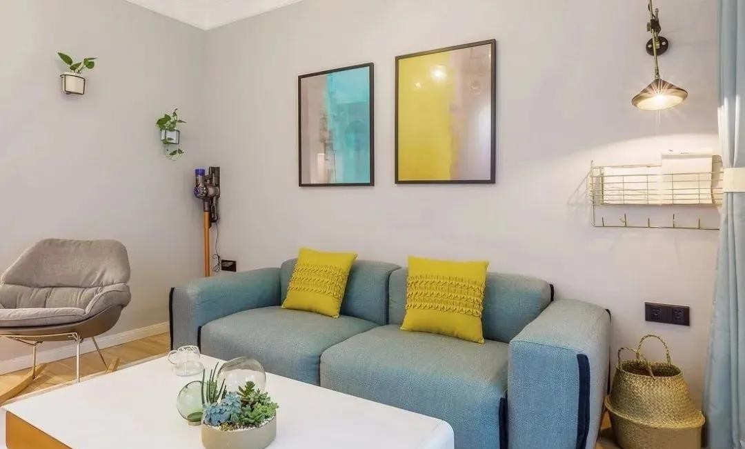 客厅,大胆采用多种亮色的碰撞,彩色的挂画、抱枕、地毯,增添了活泼生动的家居氛围。
