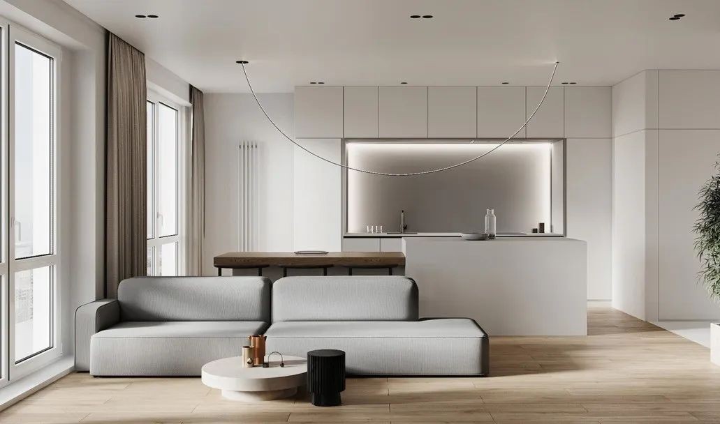 裸色系内饰,也能形塑柔和优雅室内气息,采用米色系筑起纯色墙面描摹 88㎡ 简约纯粹的宁静空间