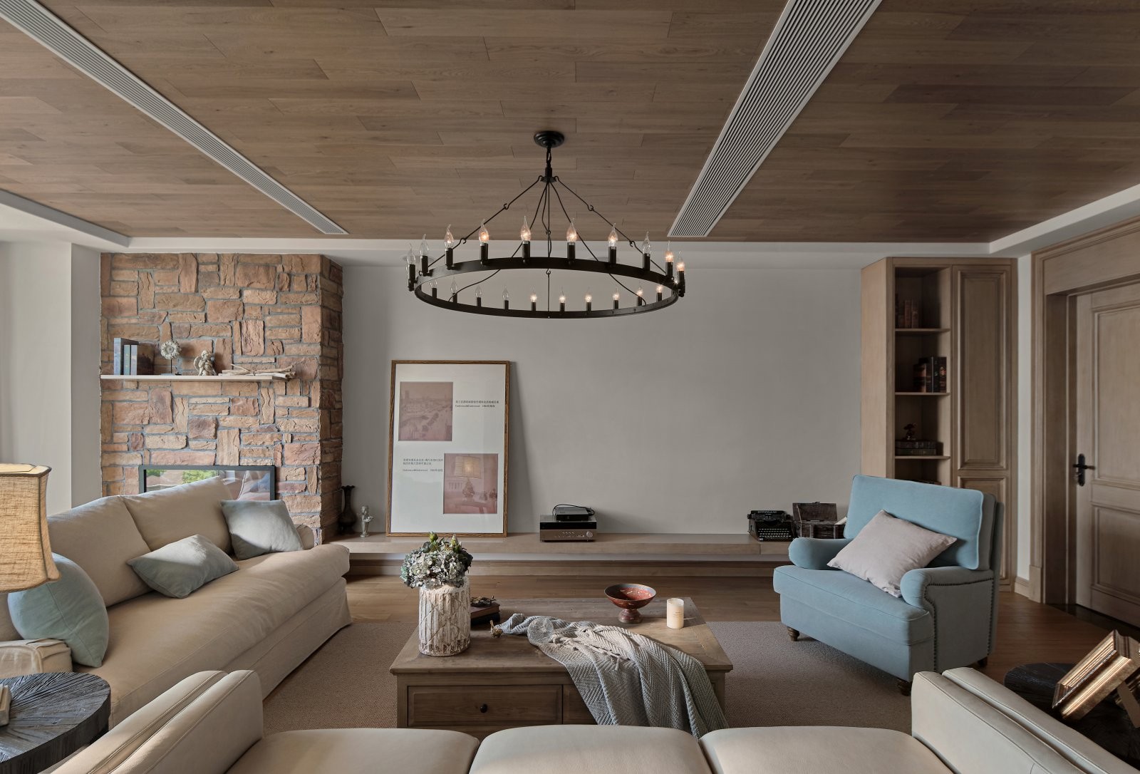 棉麻,木作,来自天然的材质,带来放松感和舒适感,白色,米色,咖色,海洋淡蓝色,大量的原木运用,给我们家庭聚会,娱乐营造度假酒店的舒适感受。
