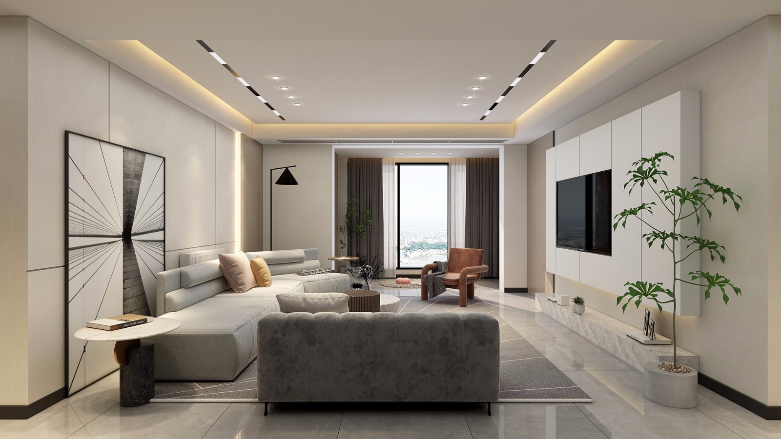 以简约流畅的线条和一些几何体来装饰,整个空间简单又不失时尚。