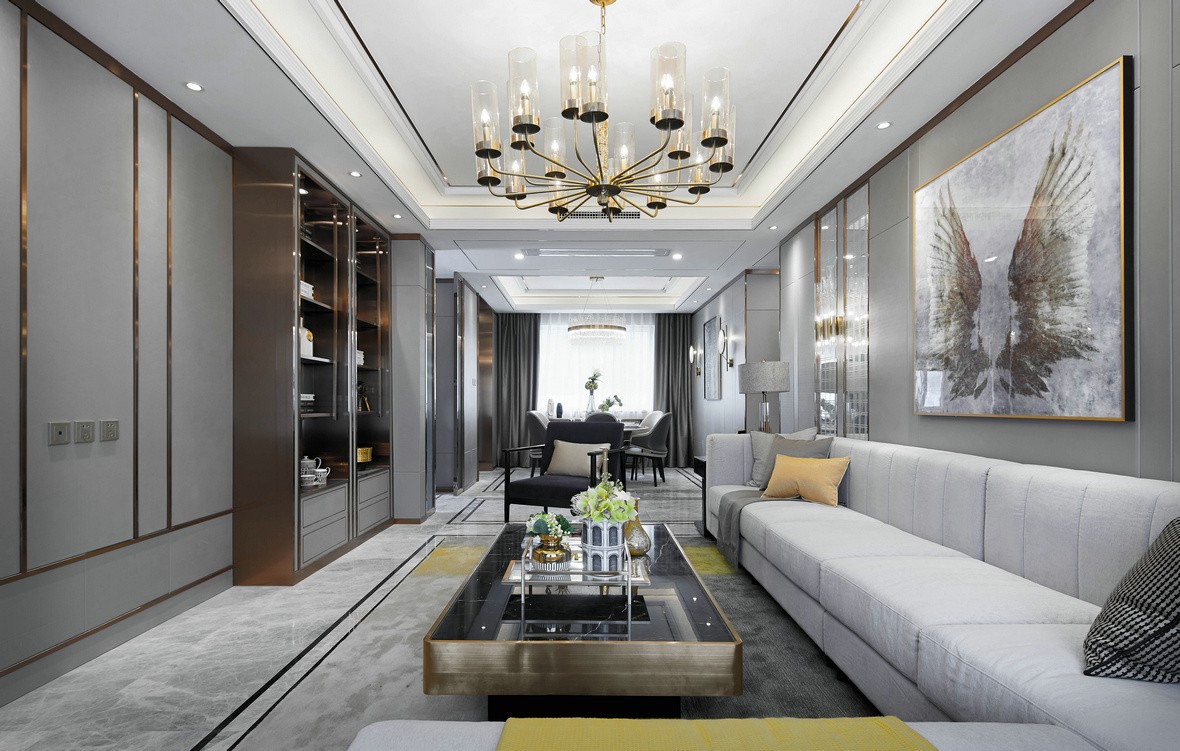 中间设置主灯,四周设置筒灯,让整个空间的光线都更加均匀明亮。