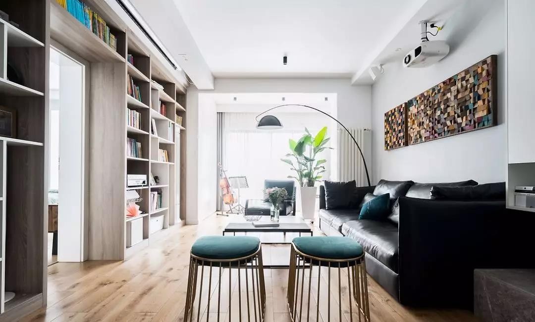 客厅连着南向阳台,原户型的墙面分隔出了一方独立的空间,设计成了小小的书房。