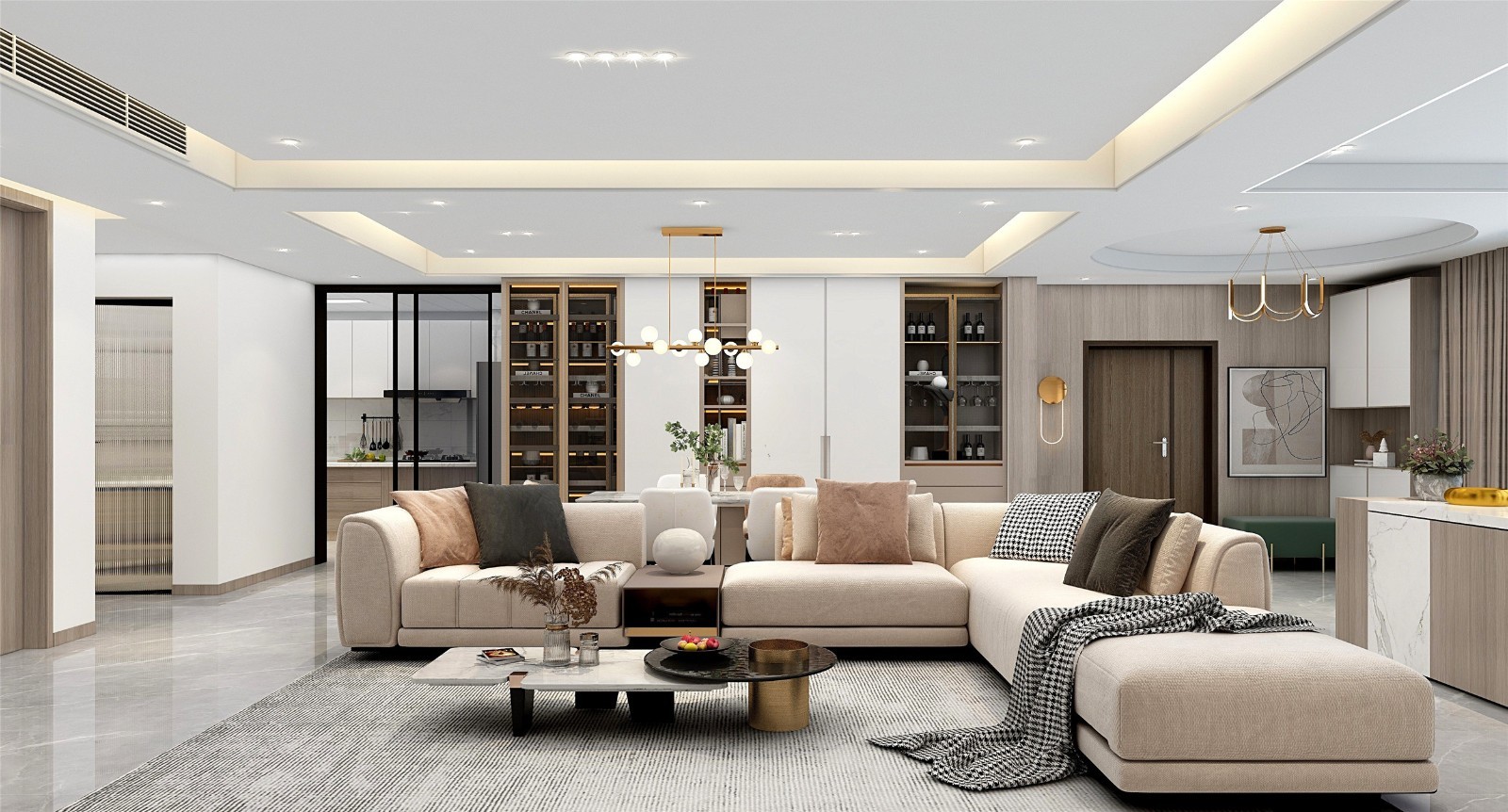相对于传统主灯照明,无主灯照明设计摒弃了单一的大吊灯,它是用筒灯、射灯、灯带、落地灯等灯具的组合,代替了传统的吊灯,多种光源的组合搭配,能够很好地营造舒适的空间氛围,使空间更加有层次感,达到视觉上的延伸,让整个空间看起来不再单一。