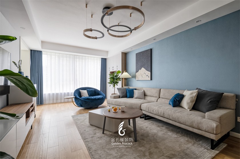 这是以一家三口为主的一个居住空间,业主夫妻都是热爱生活的人,对居家色彩追求温馨感。他们有一个可爱的女儿,对家的一种憧憬,希望设计师将空间的实用与美感都兼顾其中。在色彩搭配上,选用了蓝灰色元素,一方面蓝灰色是比较中性的颜色,男女业主都容易接受;另一方面,蓝灰色也是一个让人感觉比较放松的颜色,能够舒缓心情。我希望我的业主辛劳工作***,回到家的一刻,能身心放松。