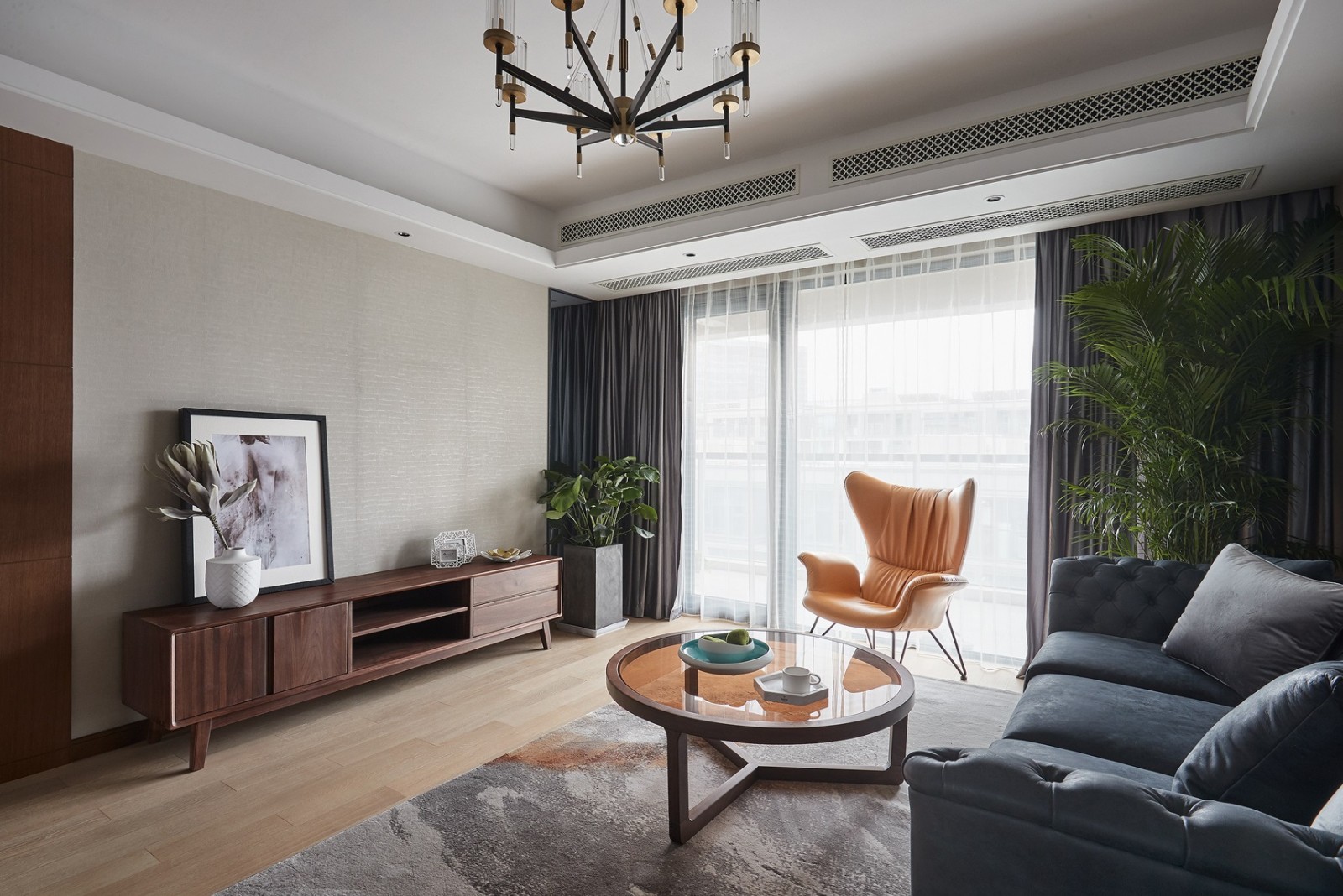 如果说黑白灰演绎出优雅,那么一点亮眼的橙必然是点缀空间气质的高手