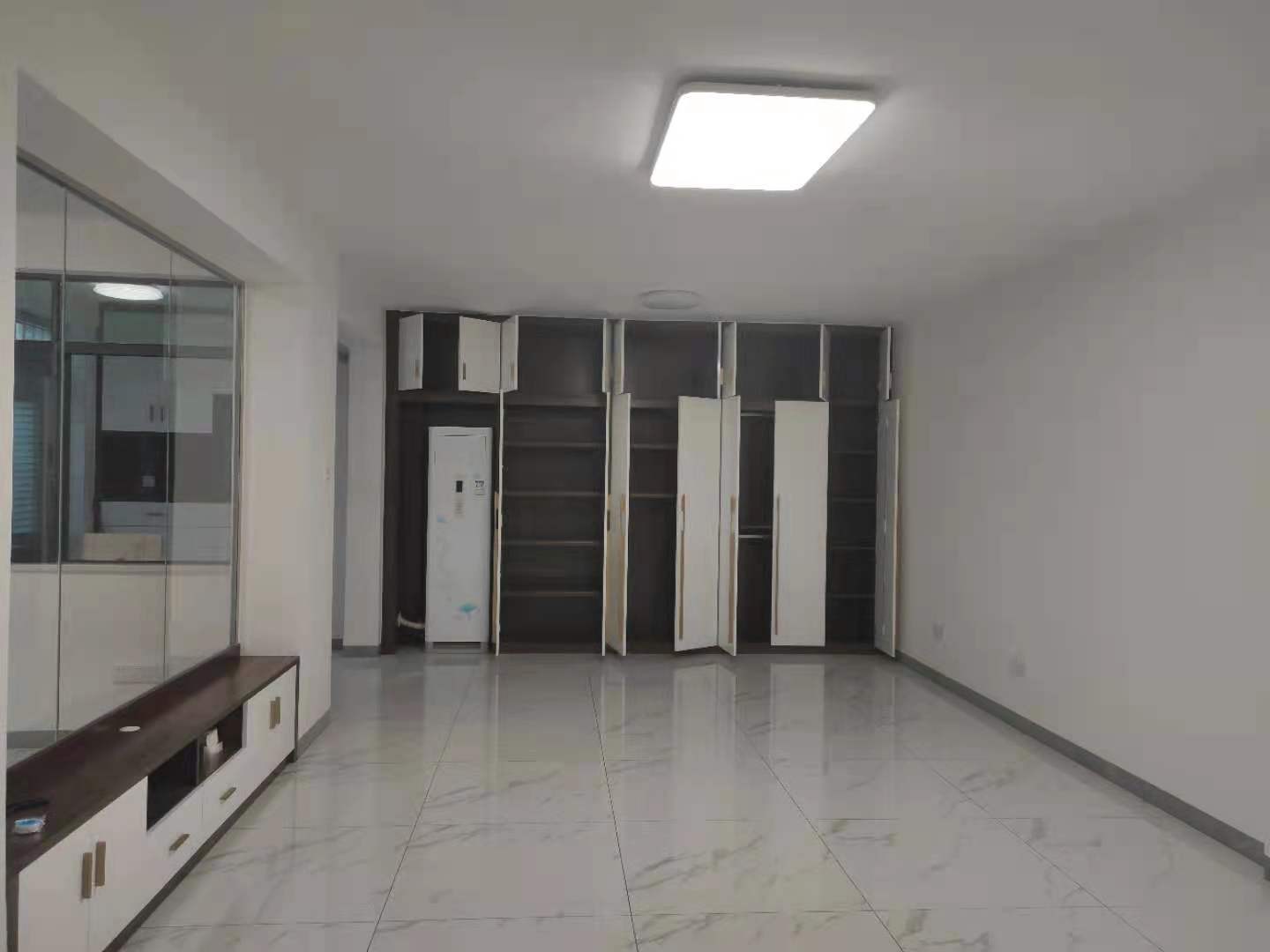 电视背景墙与书房实用玻璃隔墙,增加客厅采光性