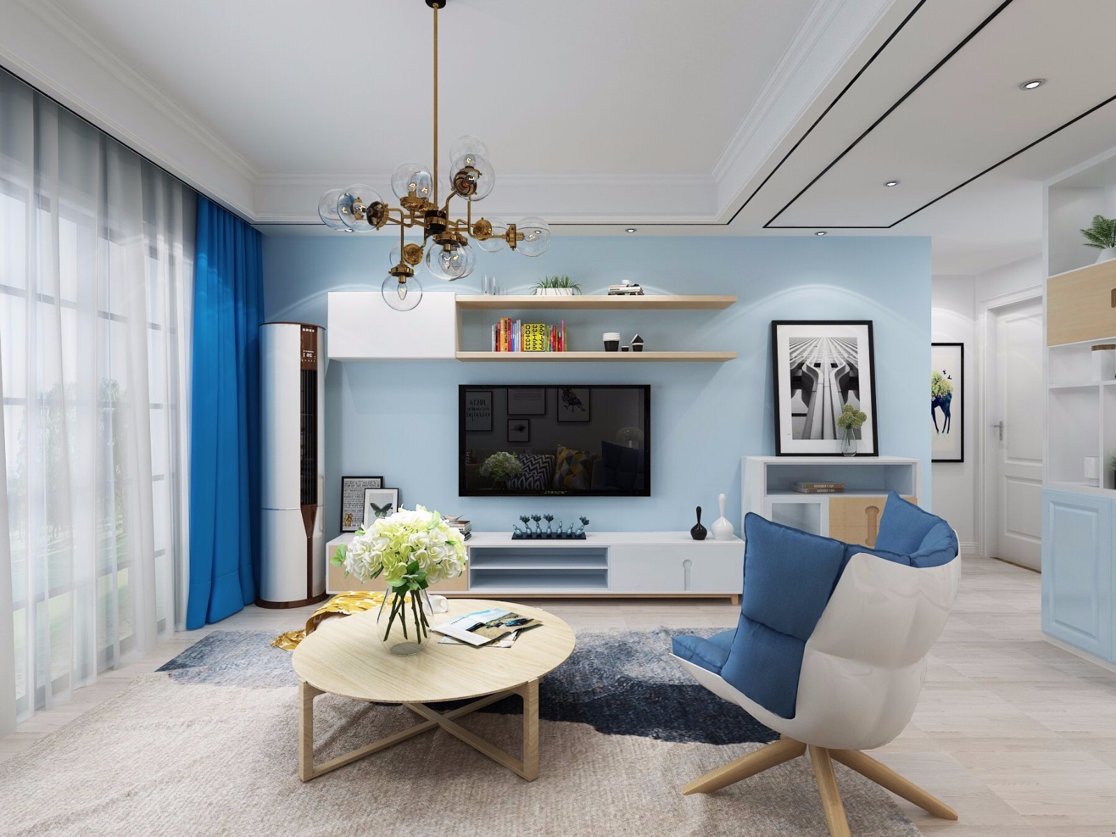 简单明了的白色为主色调,蓝色在空间具品味与格调。