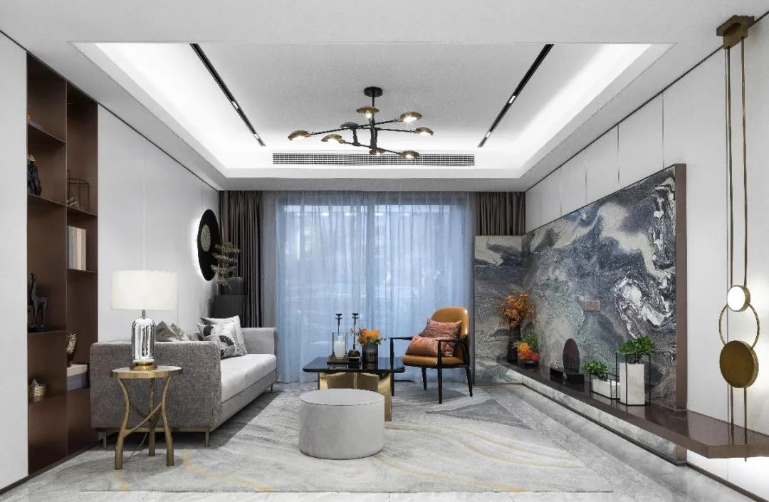 130平米的新中式三居室,硬装基调以现代***的空间感为主,在背景墙加入大面积的硬包背景墙,布置现代稳重而华丽气派的家具,营造出一种档次优雅的居住氛围。
