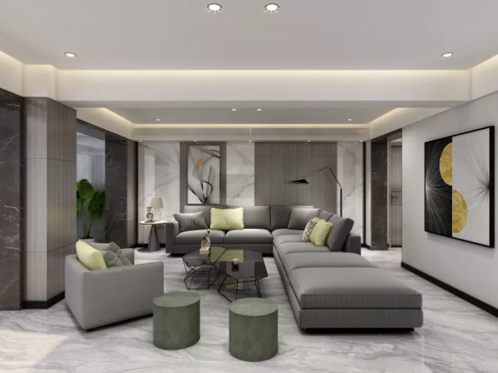 本案采用港式现代风格,用木饰面以及大理石材质突出质感。
