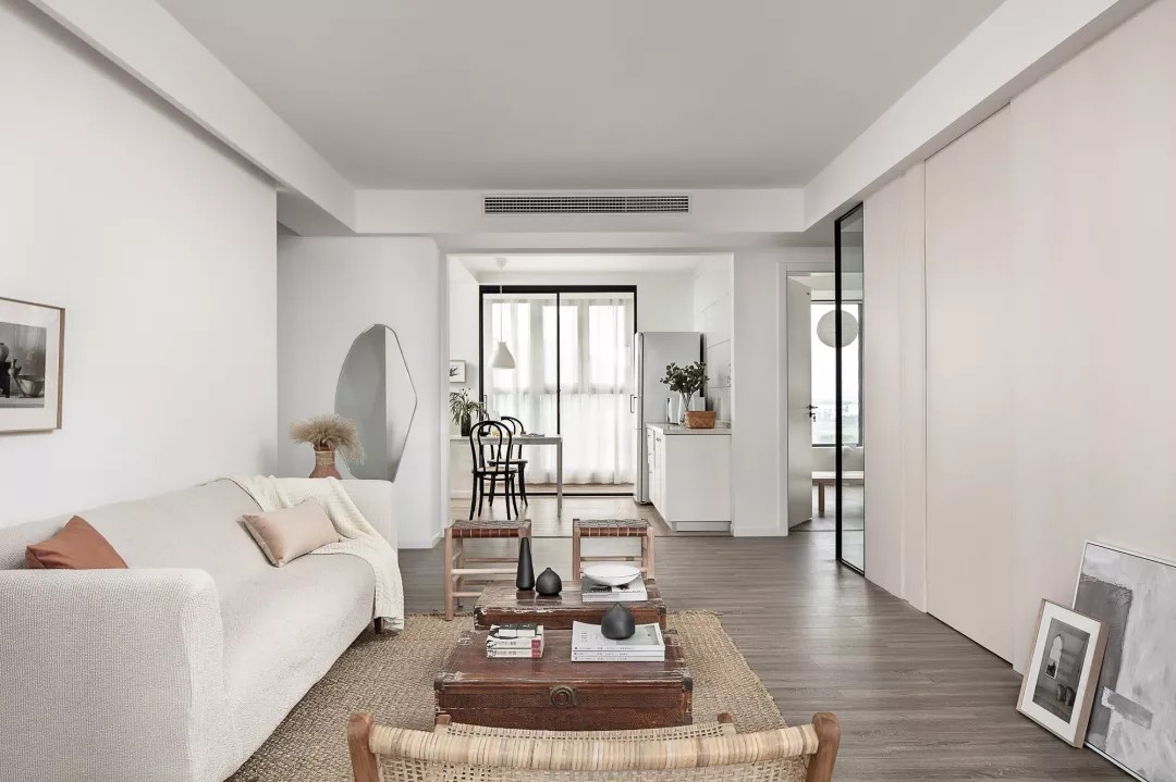 墙面统一配色,客餐厅一体,具有延伸视觉的效果