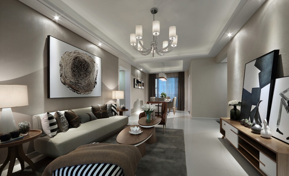 在空间布局上,设计师将客厅与餐厅放在同一区域,空间更加流畅,原木与米白的色调,整洁舒适。