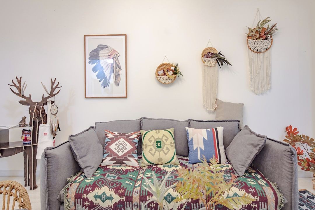 墙面挂饰、布艺软装,不同材质和色调的结合,让原本单调的空间,增添了几分家的温度感。