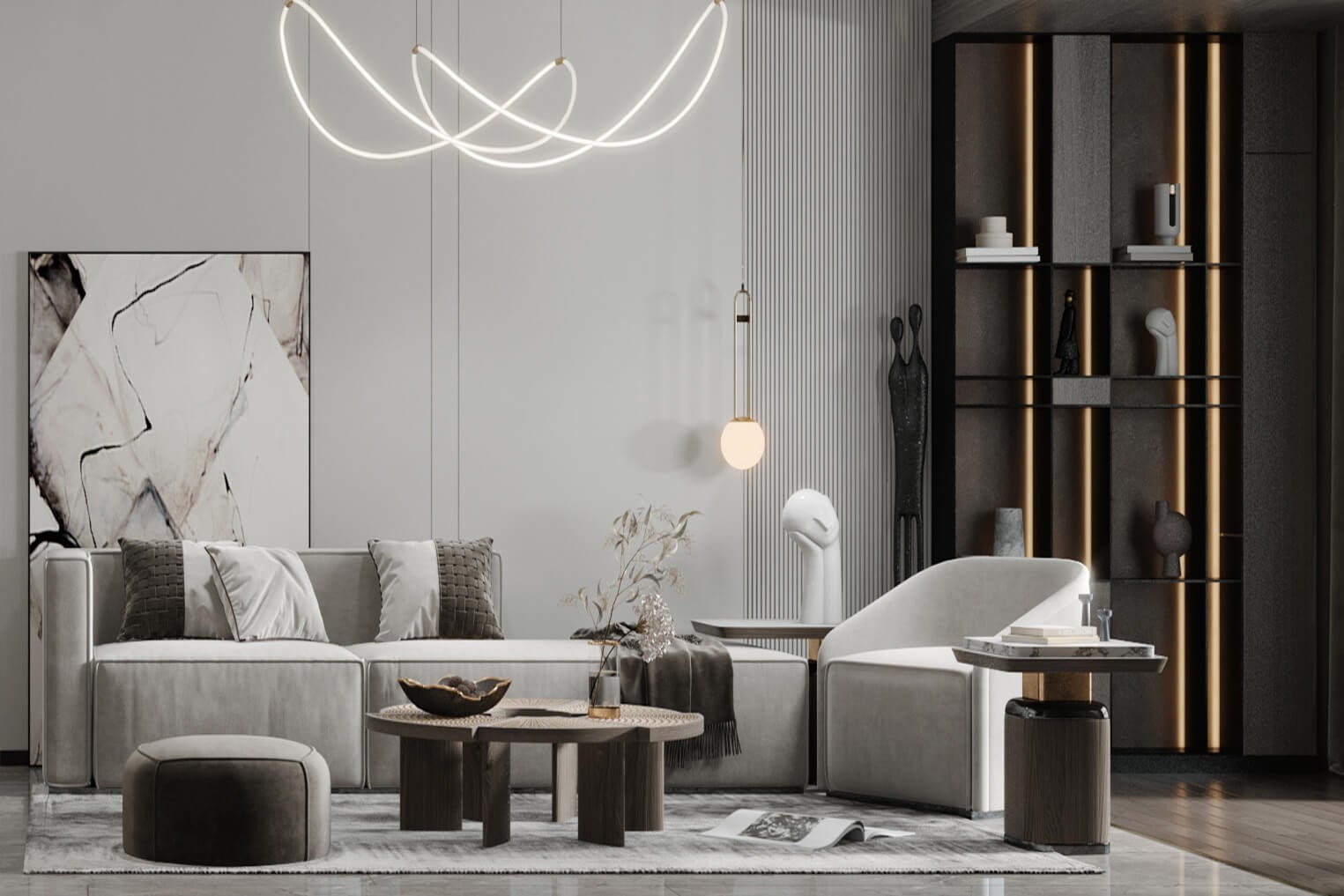巨幅抽象派装饰画与创意雕像,让整体家居看起来更***。摒弃虚无的浮华,感受沉静简约的美。