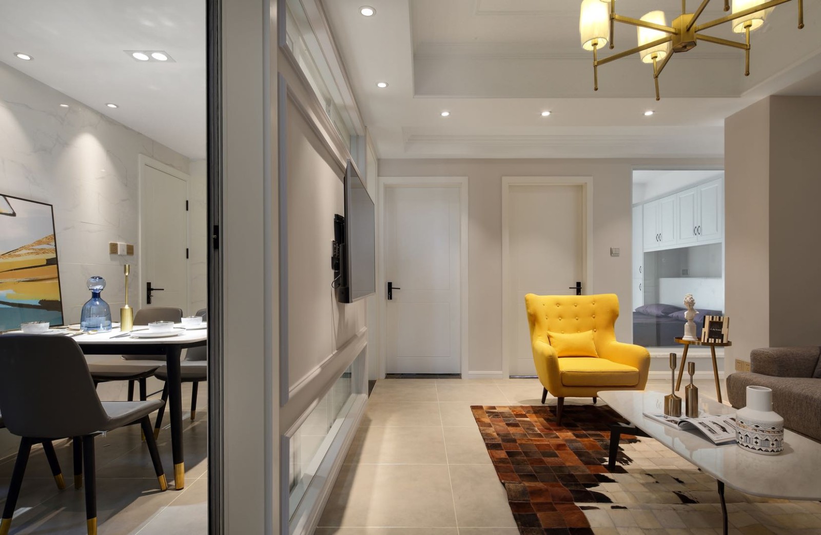 客餐厅的互动性,悬空的背景墙,让空间更加灵活起来
