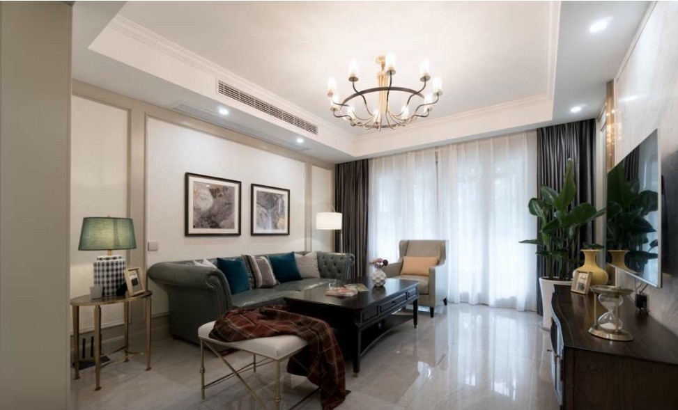 整个客厅主打颜色是棕灰色和暖白色整个空间充满迷人的气质。