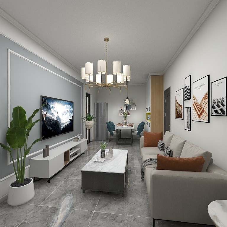 客厅只是电视墙做了双线造型,其他保持墙面白色