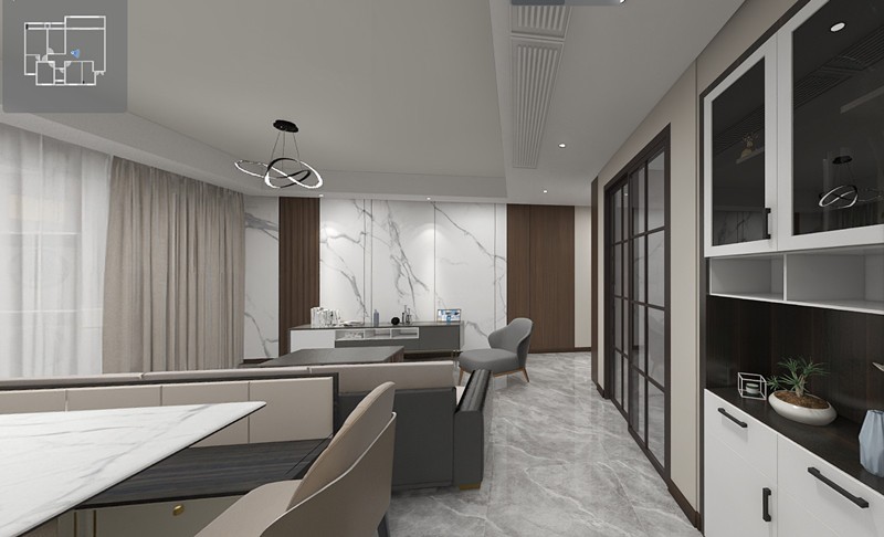 餐厅与西厨相结合,同时也连着客厅,环行动线特别舒适