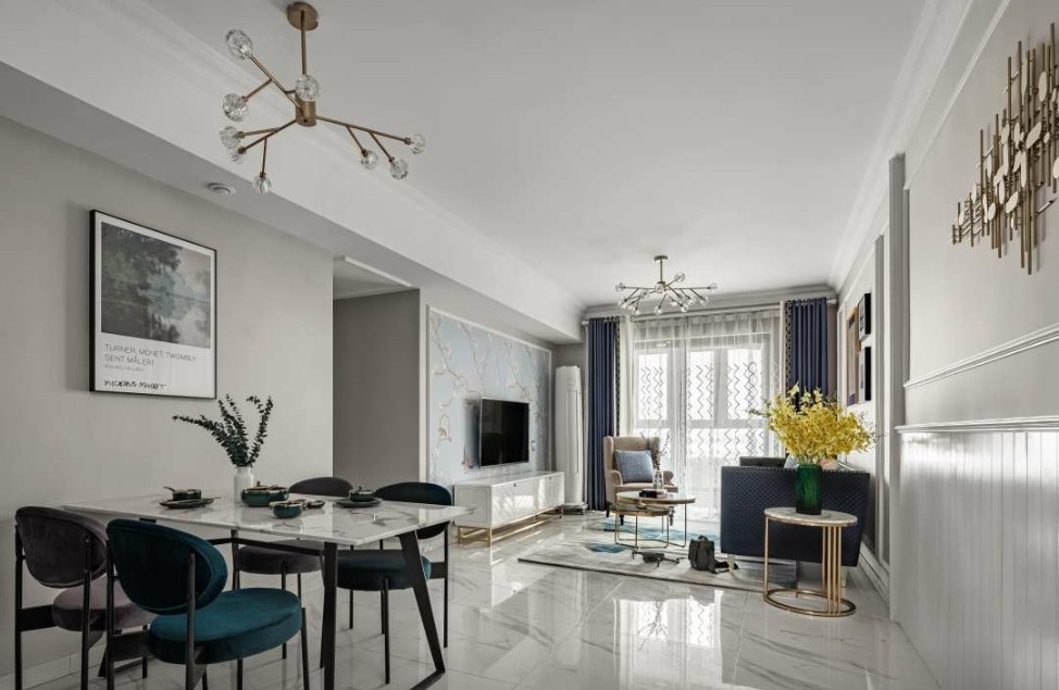 整个空间不喜欢有很多复杂的造型及亮色,对家居空间整体的感觉要求比较高。沙发背景是采用了哑光的灰色乳胶漆,搭配灯具的黑色、吧台的木色、沙发的及电视背景的白色使整个空间变得更加安静、温馨、素雅。