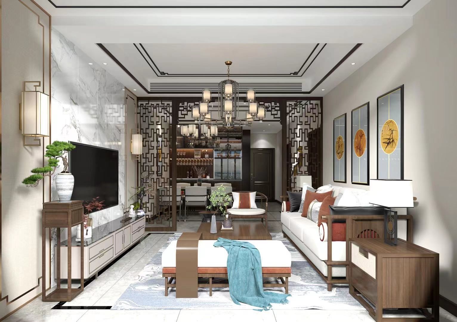 整体非常规整得4房户型,客户要新中式风格,储物空间要大,整体要大气。