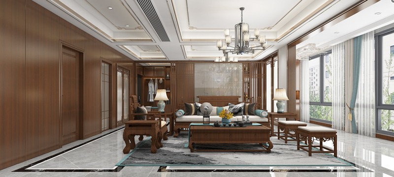 吊顶分区体现中式风格得大气,家具搭配整体色调