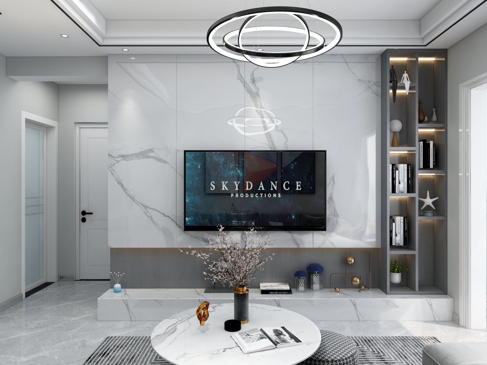因为户型比较小的原因所以电视墙增加了储物格
