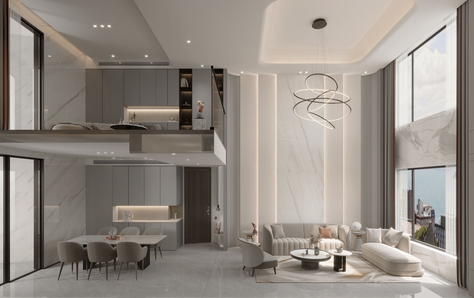 本案设计师对原始楼梯位置进行了调整移位,使现有楼梯位处于一个采景采光区,并且使空间得到了更高的利用率且更加美观,改变了整个格局的弱点