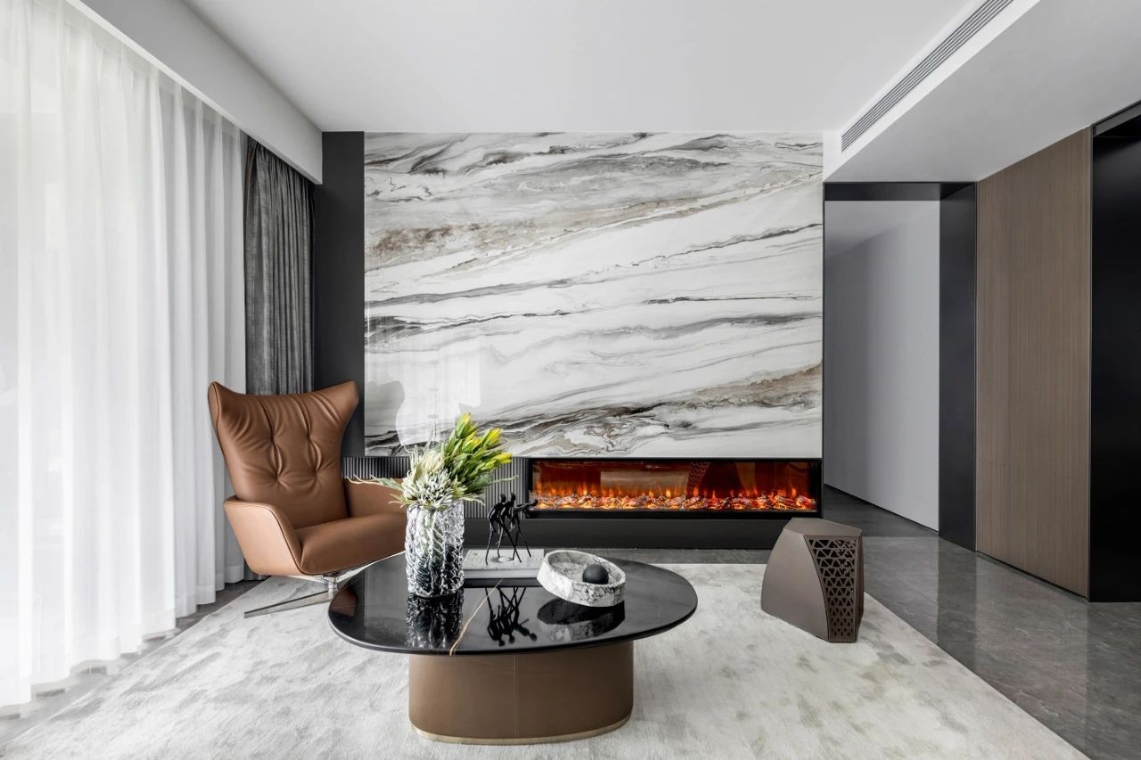 金属、玻璃、石材、皮革、织物,通透与混沌,坚硬与柔软,和谐地溶于黑与棕的色彩中。丰富但不满溢,微妙的平衡之道。