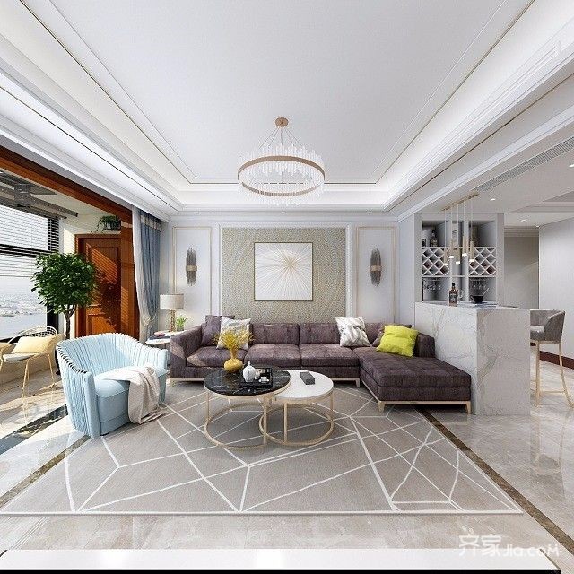 林荫大院167㎡轻奢风格--客厅效果图1