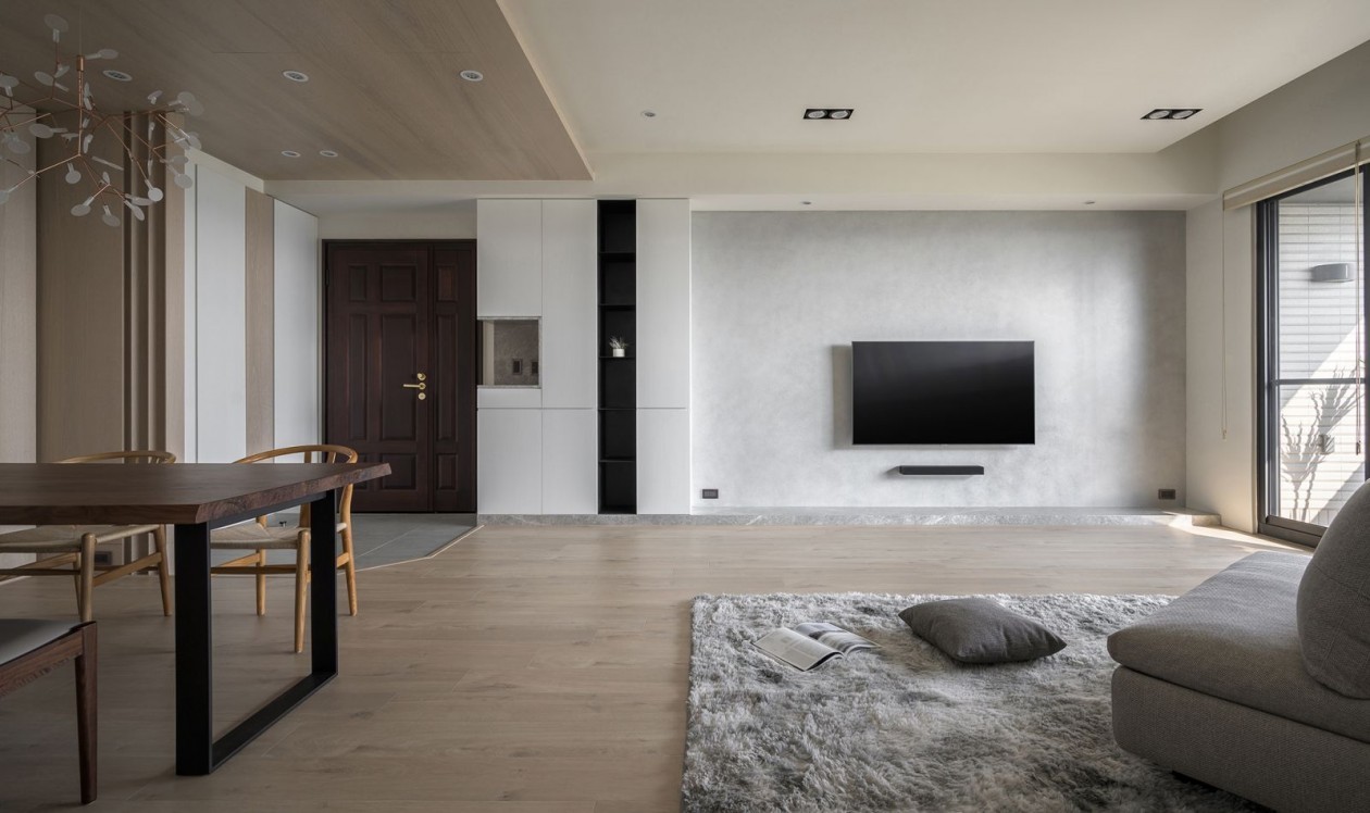 餐桌形成一体,简约精致的吊灯烘托出非同一般的艺术质感