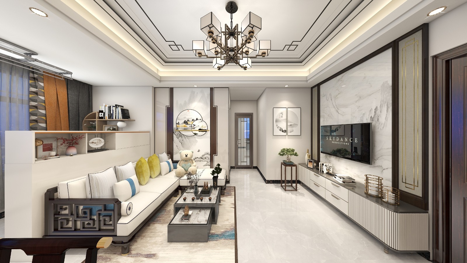 客厅简中式风格明亮舒适