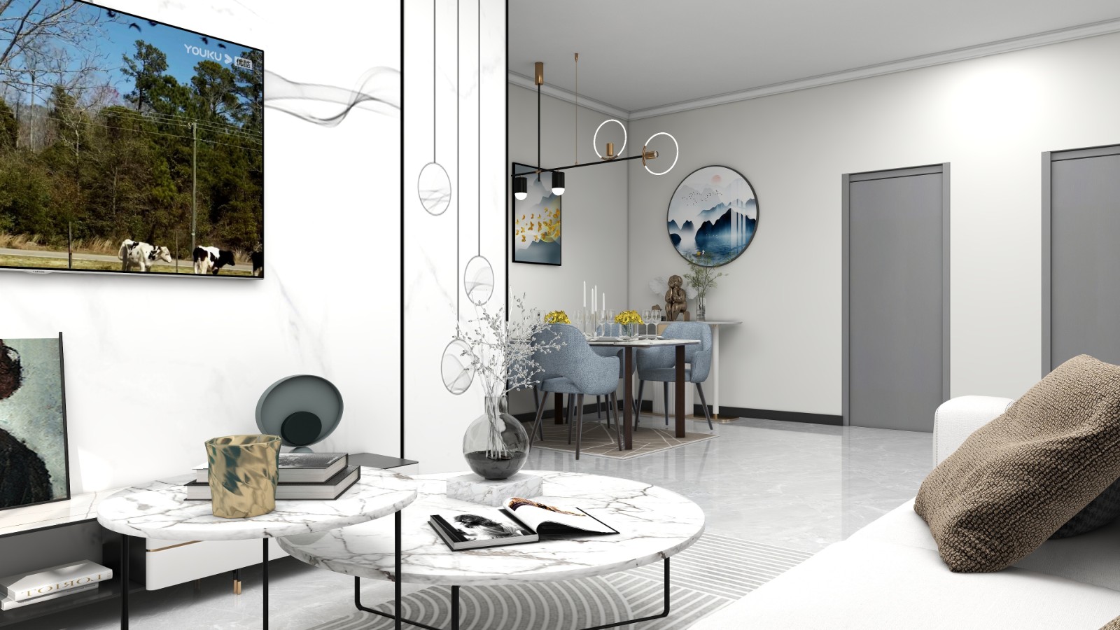 客厅以白色调为主,轻奢风格。
