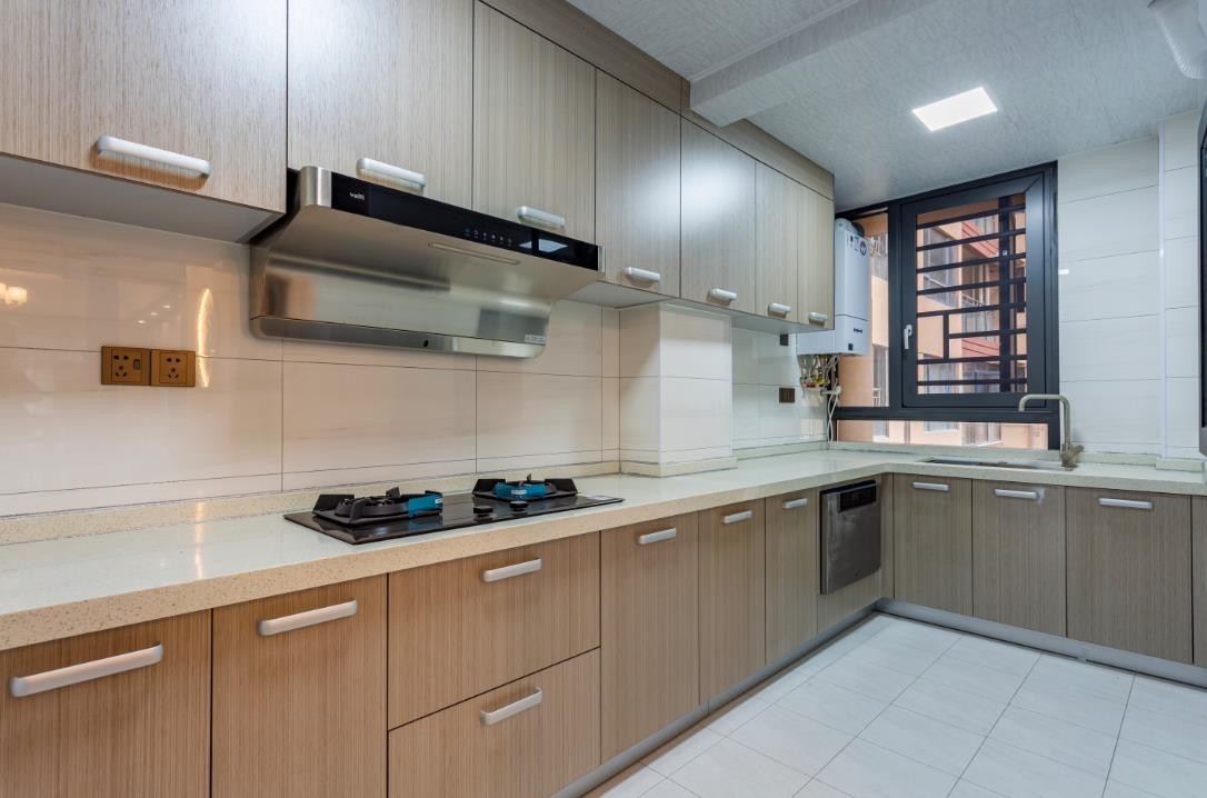 厨房异型区域较多,***的l型柜体设计弥补了空间的不足。
