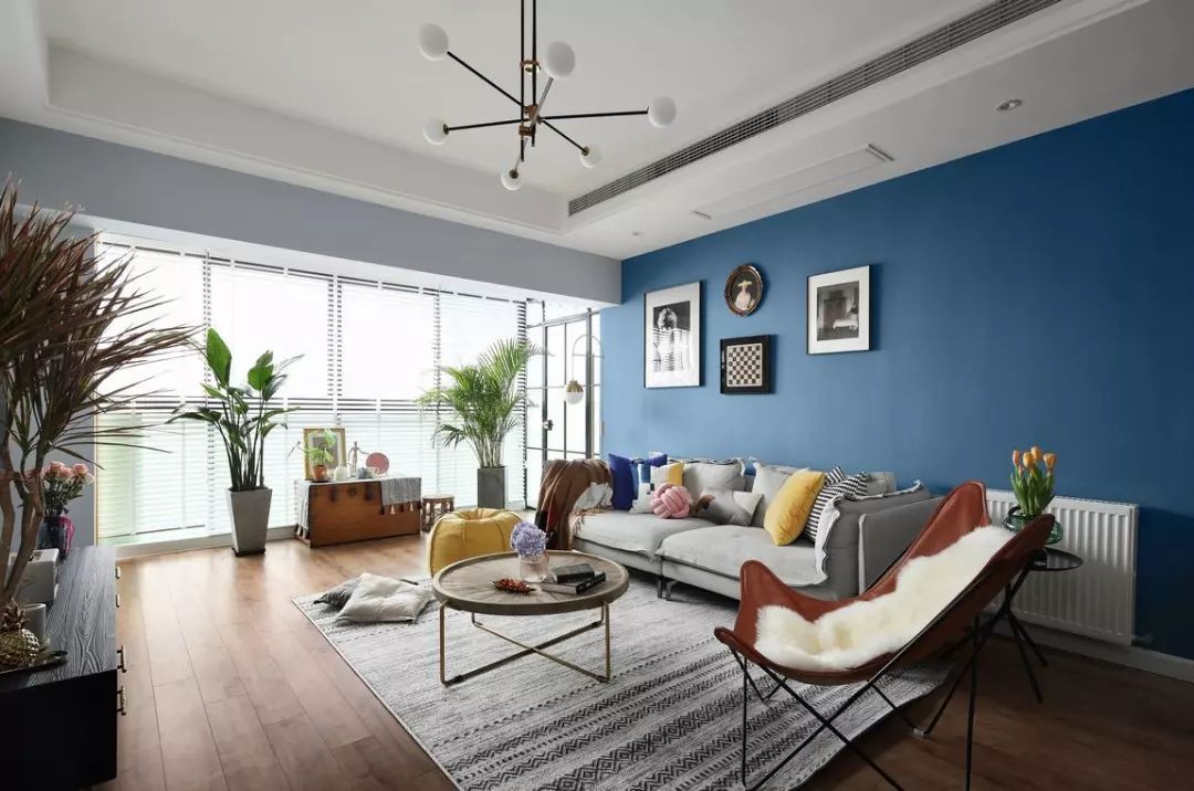 客厅,深浅不同的蓝色简单几笔勾勒出了空间的层次感。