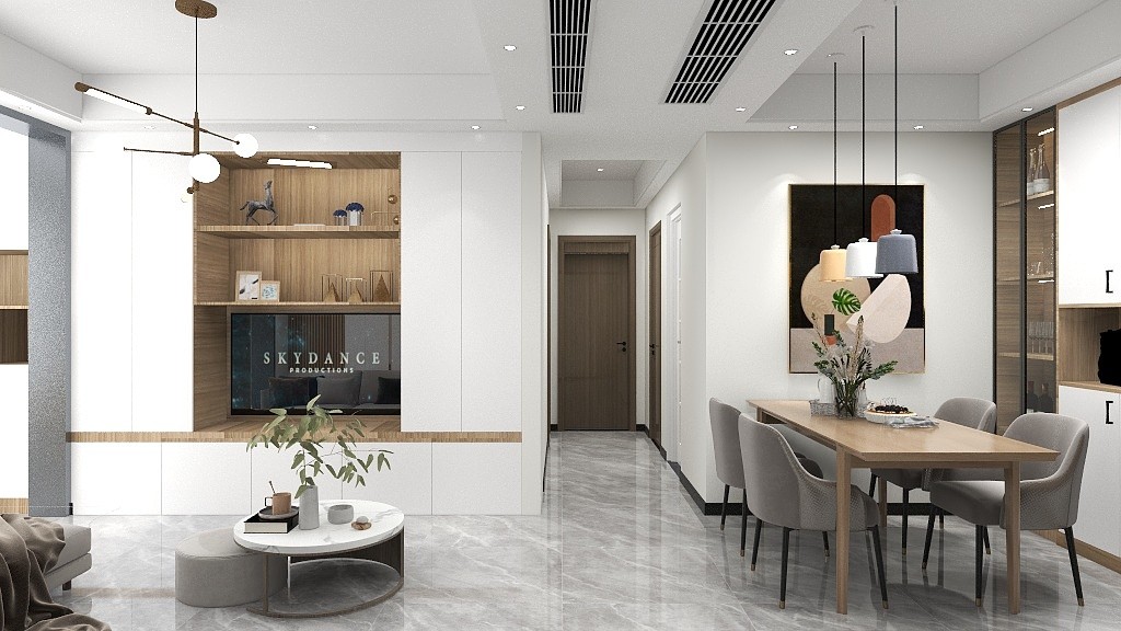 用原木色桌子,结合东南亚风格的柜子,给人宁静之美