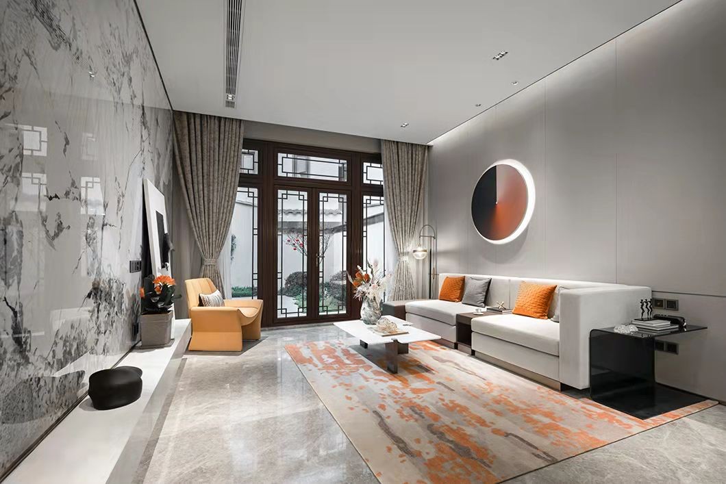 一道残阳铺水中,半江瑟瑟半江红,夕阳下的青弋江或许是芜湖最美的颜色。 空间色彩体系源于自然,犹如夕阳下波光粼粼的江面,落日余晖在挂饰和地毯间折射辉映,带着一点微醺的眩晕,归于静谧安然之中……