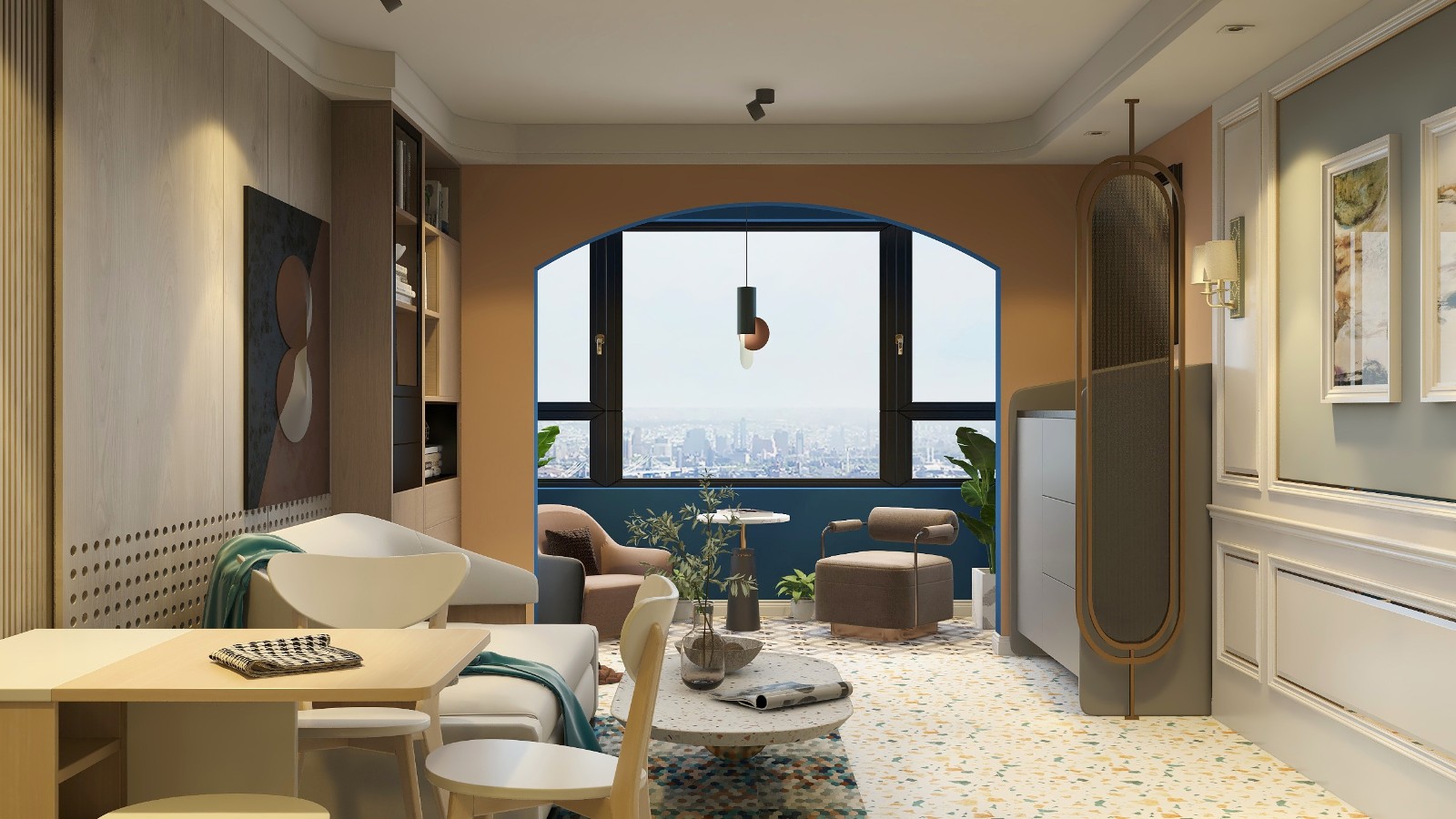 阳台采用了弧形的装饰造型,让阳台同厅内更融合