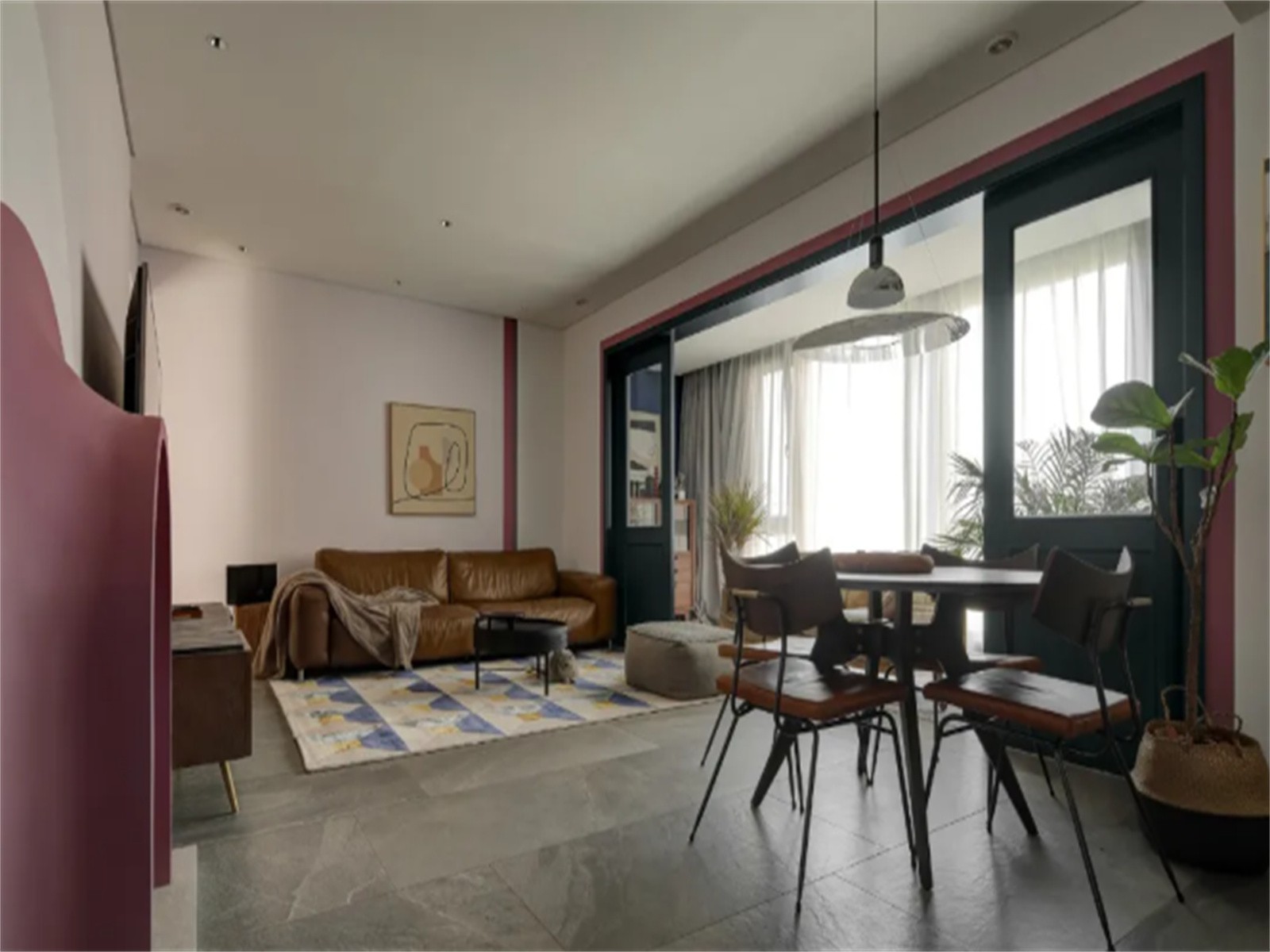 客餐厅一体化格局,将阳台封上纳入室内,大大增加使用面积与采光