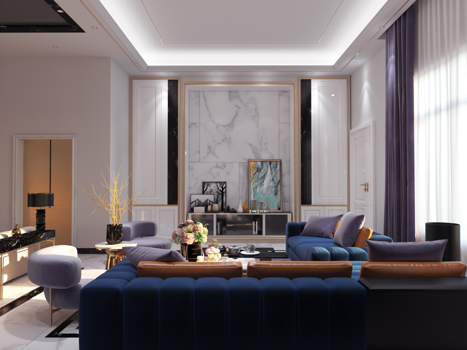 不同角度的负一楼会客厅。意式轻奢