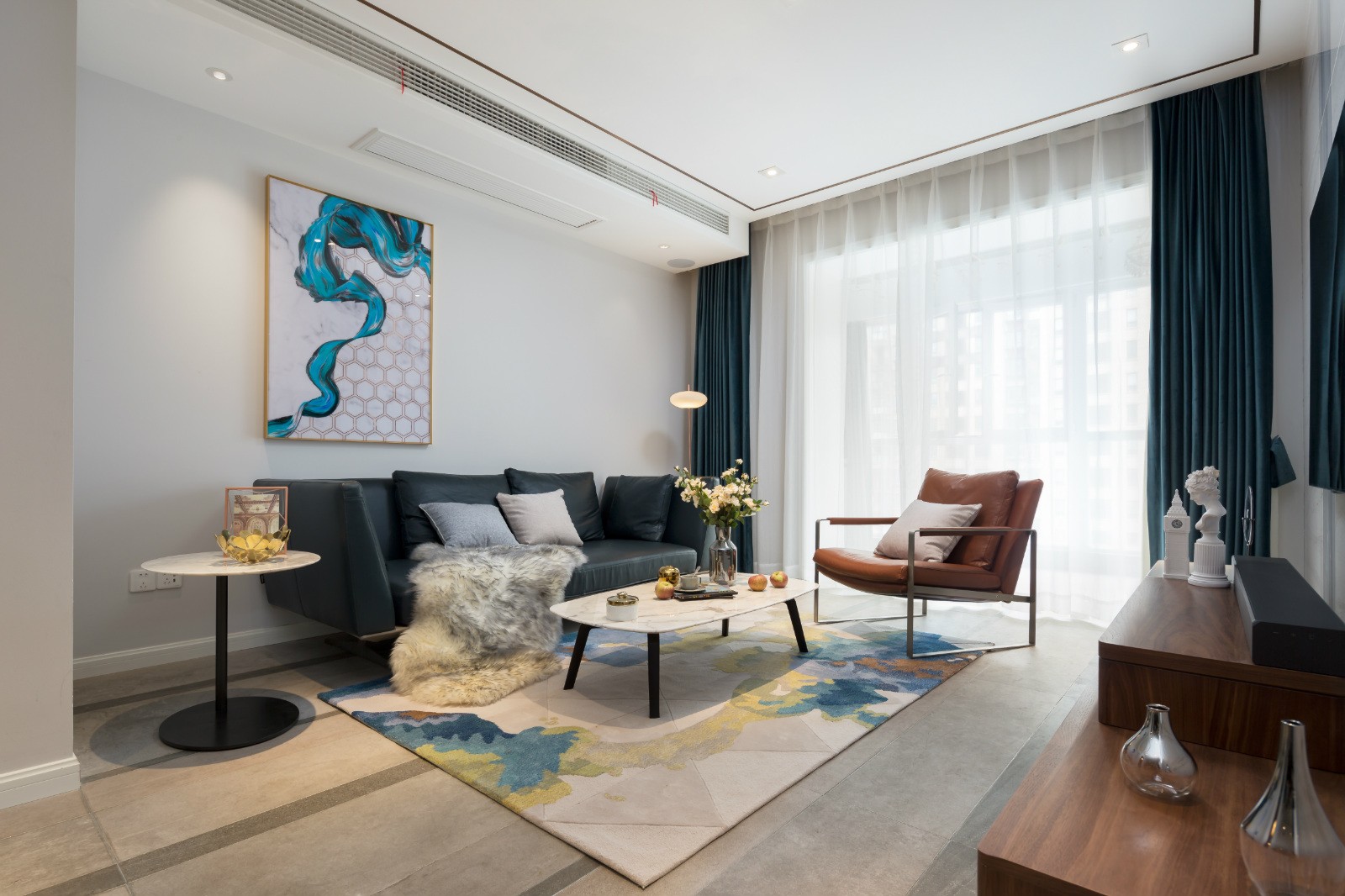 和地毯相搭配的挂画让整个空间更加精致