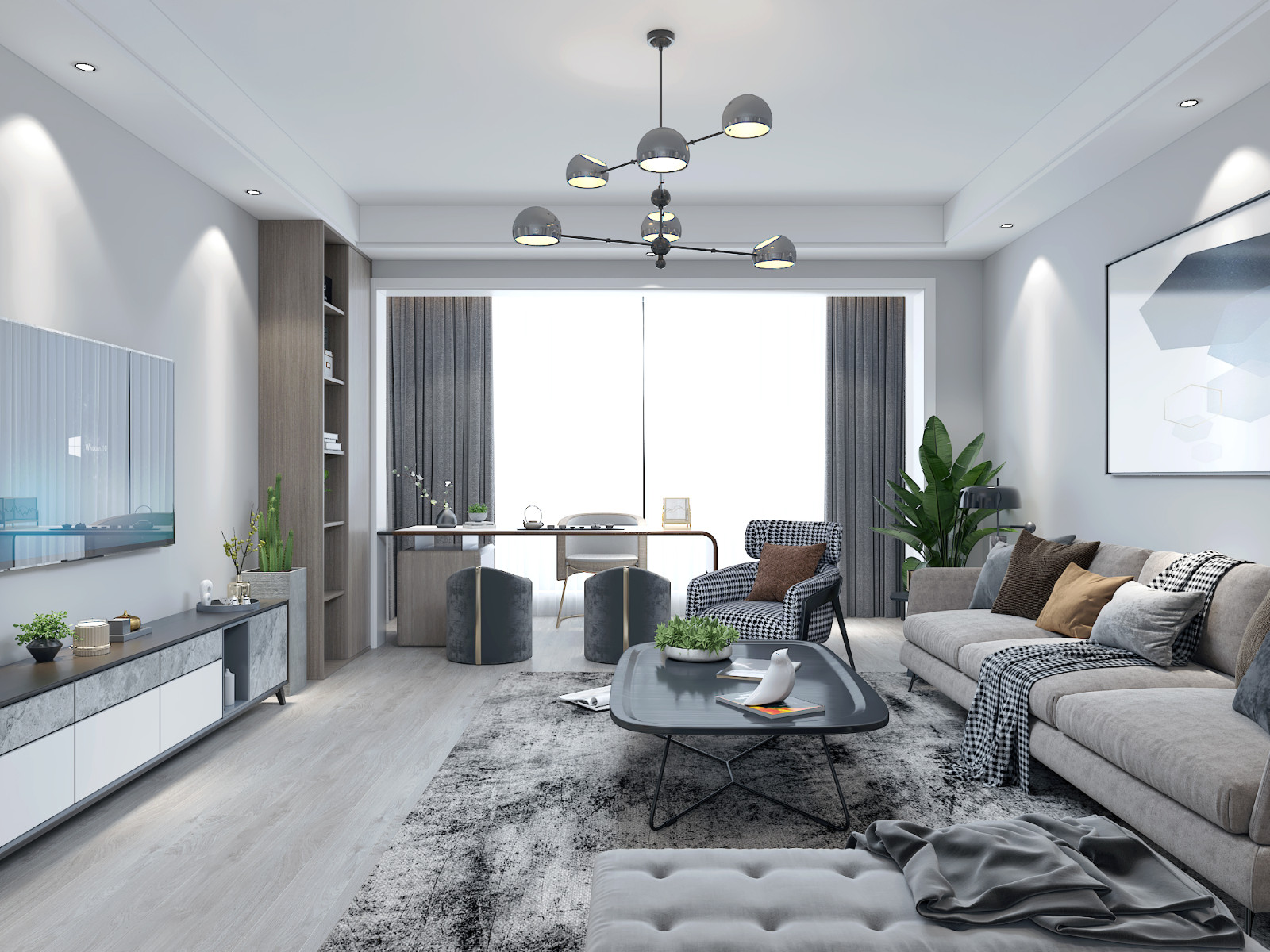这套房子的整体设计理念以现代风的空间基调为主,硬装方面以简约的外观,时尚现代风的质感搭配。配以黑白灰的软装,加上艺术主灯的设计,使得空间更具优雅时尚的档次感