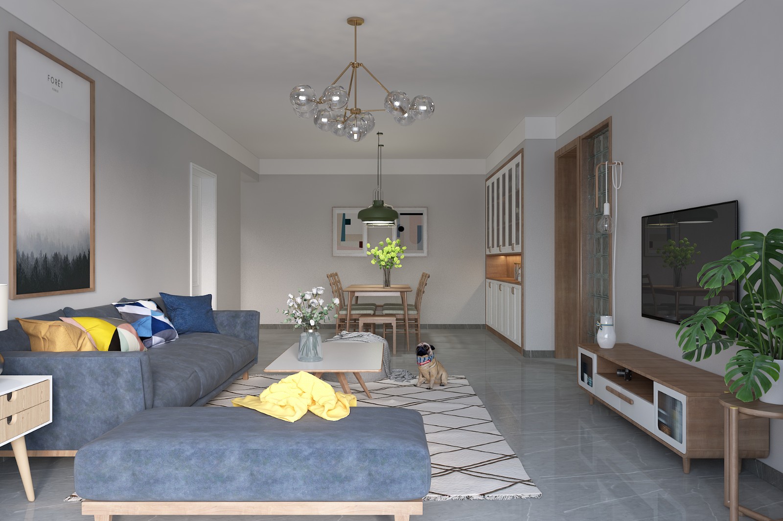 极简的客厅设计,抛弃复杂的线条及纹理,大理石通铺使空间更具明亮感,整体色调搭配使客厅入眼感更加协调