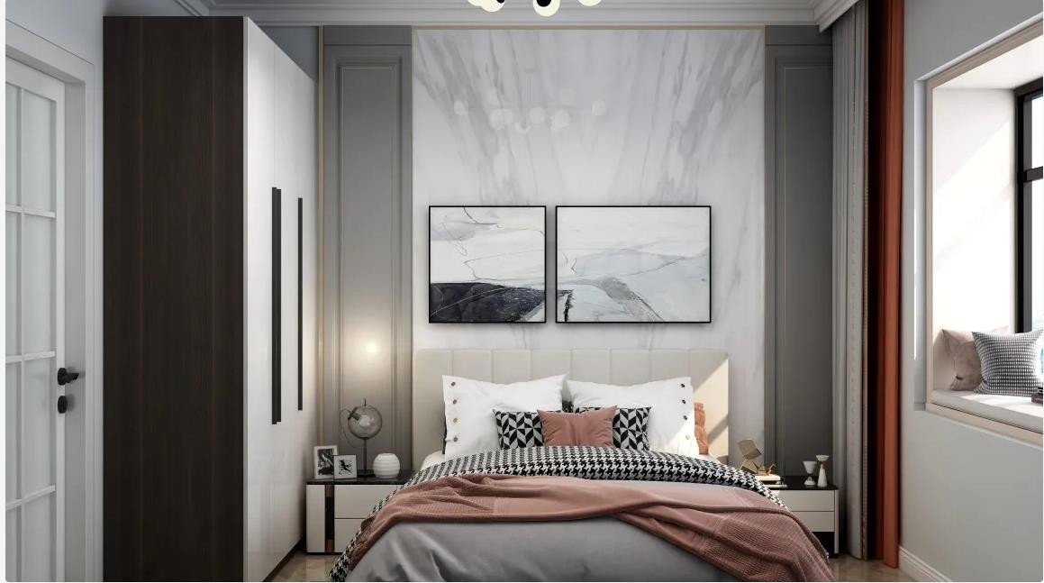 白色的墙砖,灰色的柜门,强烈的色彩差。
