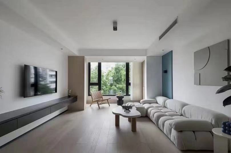 客厅采光良好,原木色做了地板