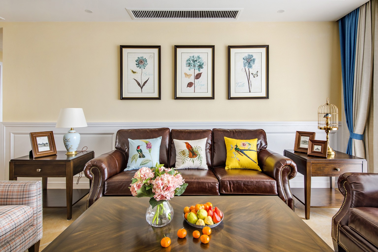 客厅整体搭配给人一种沉稳大气,低调奢华的感觉