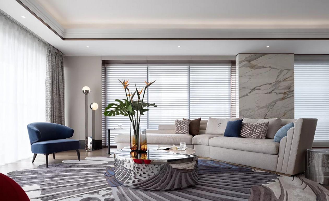 客厅空间的米灰底色低调温暖,张弛有度,弧形沙发围合出舒适通透的亲子交流场,言笑晏晏,清风徐徐,撩动纱帘,窗外的微光弥漫,远处绿树低合,依稀还能听到白鹭的清鸣。历经了万千繁华,心之归处原是家里那一隅清新宁静。