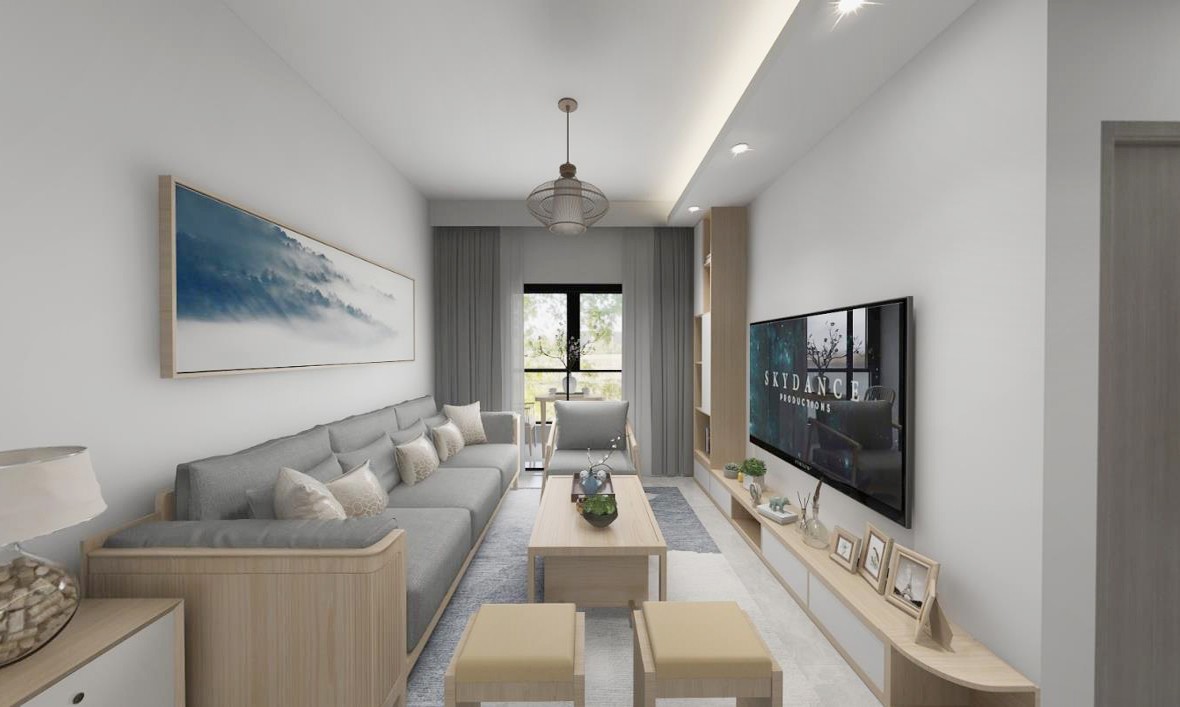 整体空间以灰色为主,彰显出沉稳的气质,巧妙搭配浅木色,让空间富有层次感。