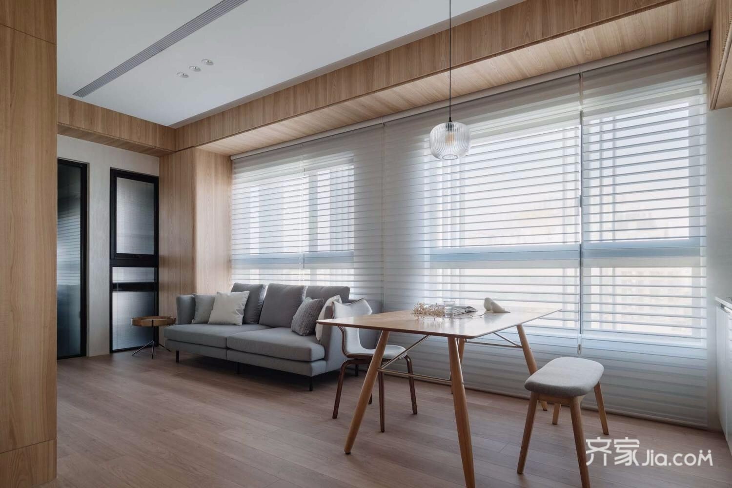 墙壁选用天然钢刷栓木并铺设超耐磨木地板打造轻日系风格,公领域开放式设计,加上大开窗使光线可以照亮室内的每一隅,无论身处客厅、餐厅,甚或是使用玻璃折门的客浴都能感受日光沐浴。